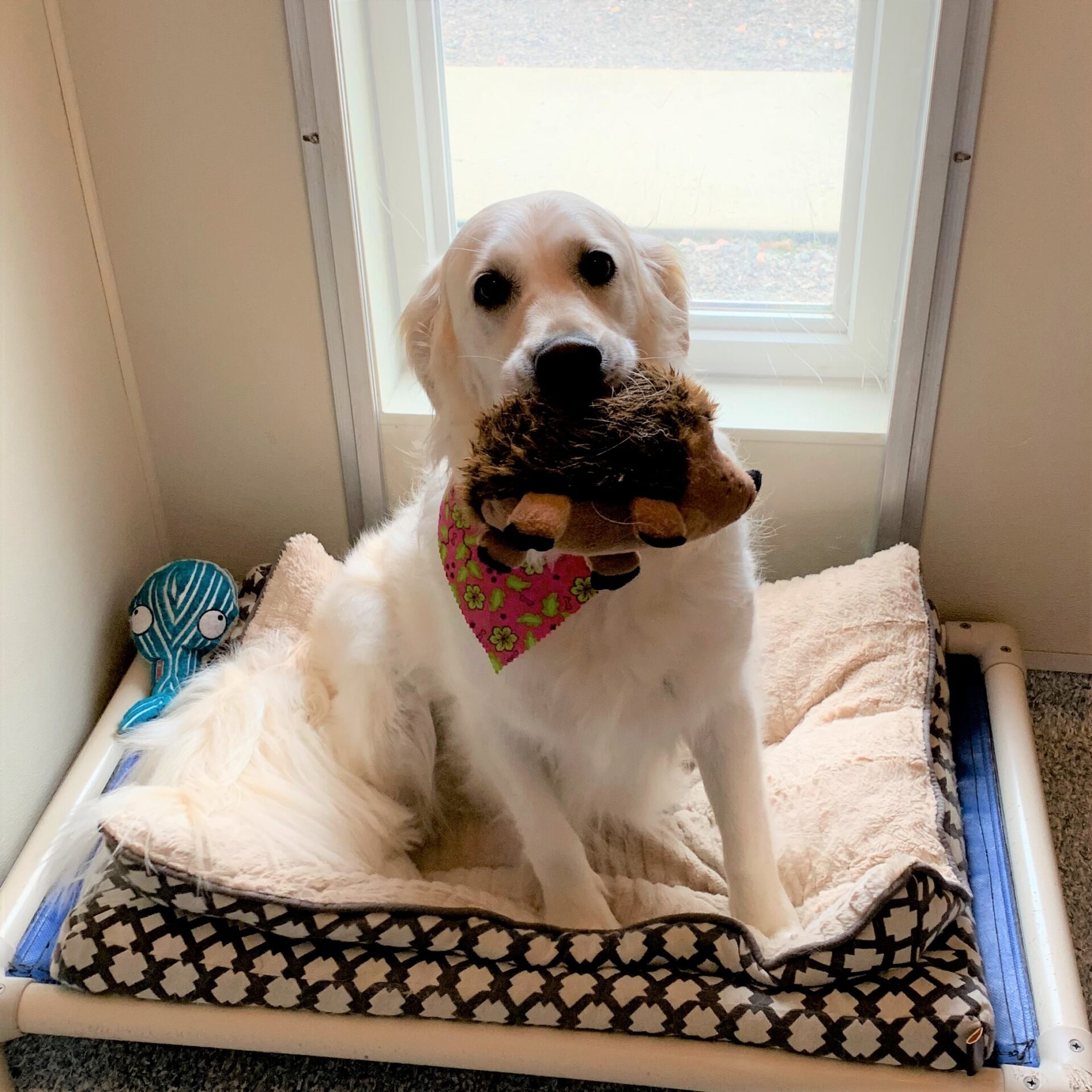 - indepartati jucariile pe care ea le considera puii ei. Daca cainele dumneavoastra isi ingrijeste exagerat jucariile sau alte obiecte, va fi necesar sa le indepartati (macar temporar). Cel mai probabil cainele dumneavoastra se gandeste la aceste jucarii ca la puii ei, asa ca va trebui sa le luati intr-o maniera cat mai linistita, astfel incat ea sa nu devina agresiva sau sa se supere. O modalitate buna ar fi ca altcineva sa o scoata la plimbare, in timp ce dumneavoastra ii ascundeti jucariile. Nu va pedepsiti niciodata cainele pentru ca si-a dadacit jucariile, ea nu va intelege de ce este pedepsita deoarece comportamentul ei este perfect natural si instinctiv.